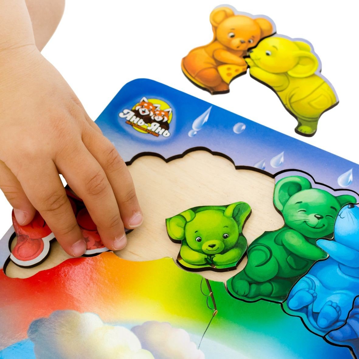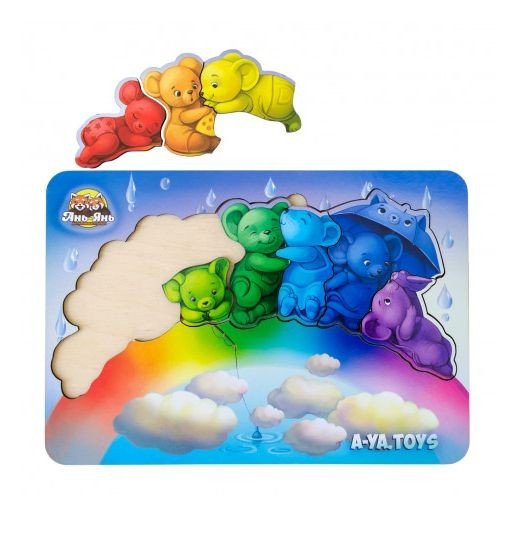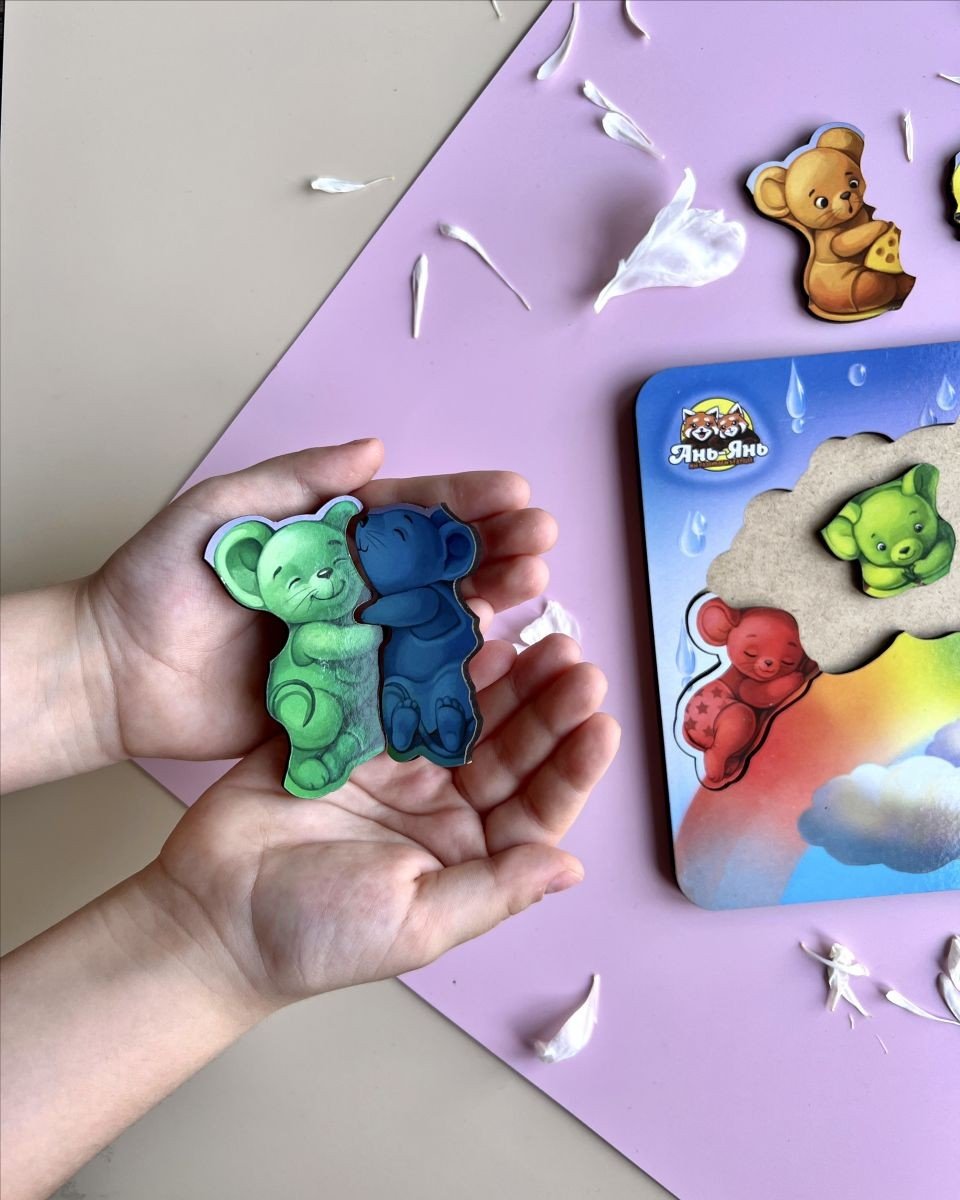 Яскравий тематичний фон цього зоопазлу дітям цікаво буде розглядати та вивчати у деталях, а 7 милих вкладишів-мишенят зручно діставати пальчиками та вкладати на своï місця за формою. Усі мишки сидять на веселцi за кольором. Можна також порахувати мишенят і придумати для кожного цікаве iм'я та історію. Зоопазл на уважність.