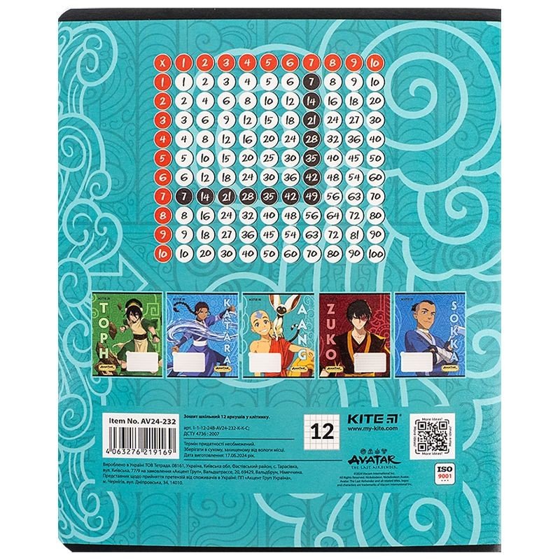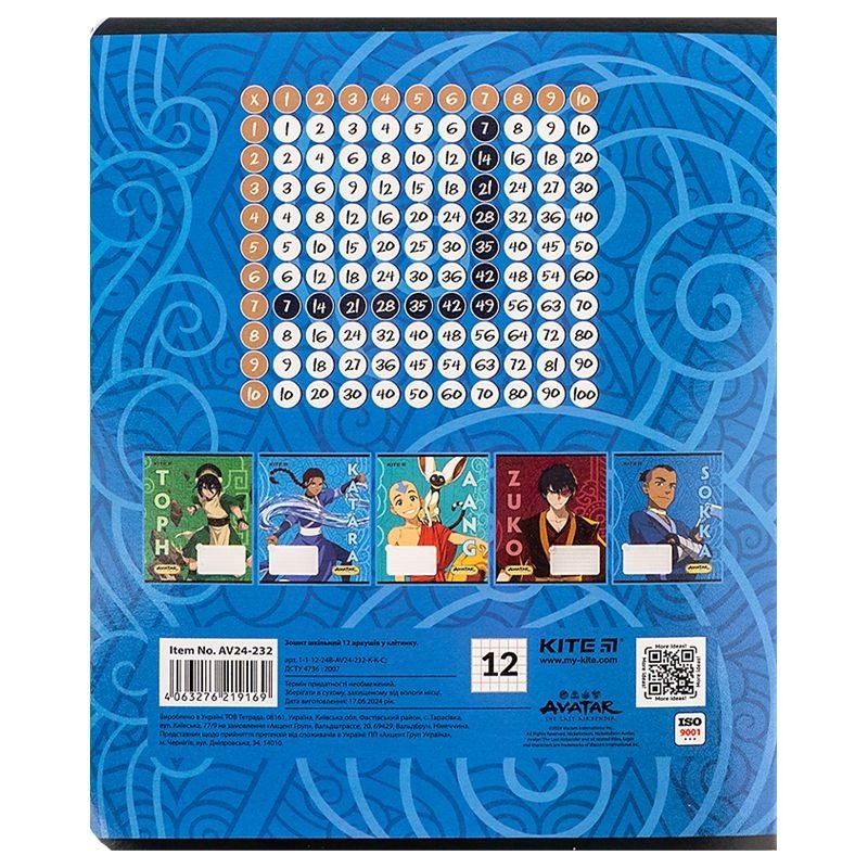 Зошит шкільний на скобі Kite має 12 аркушів, представлений у зручному форматі А5. Аркуші в зошиті зроблені зі щільного паперу, розлініяні в клітинку. Виріб представлено в ущільненій кольоровій обкладинці з ліцензованим зображенням в 5 дизайнах. Ефект на обкладинці: гібридний лак та вибірковий УФ лак. Кольорова задруківка форзаца.