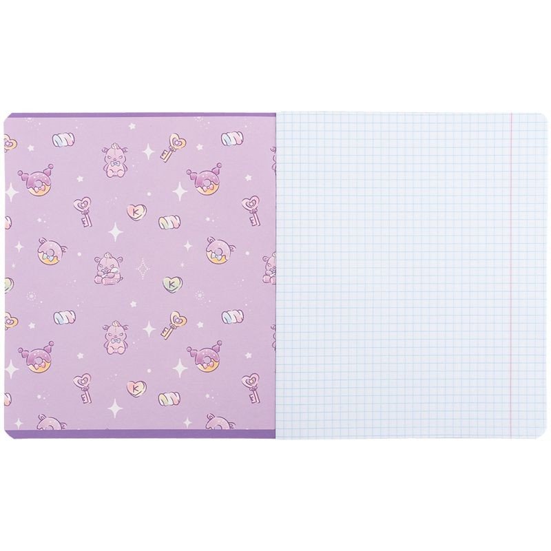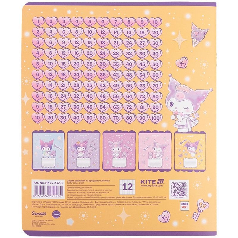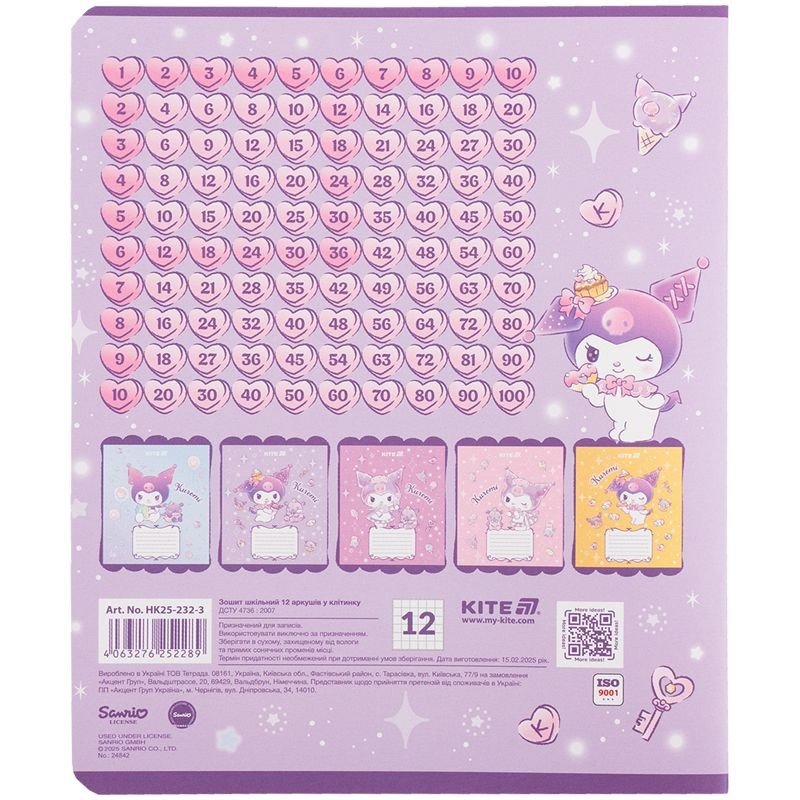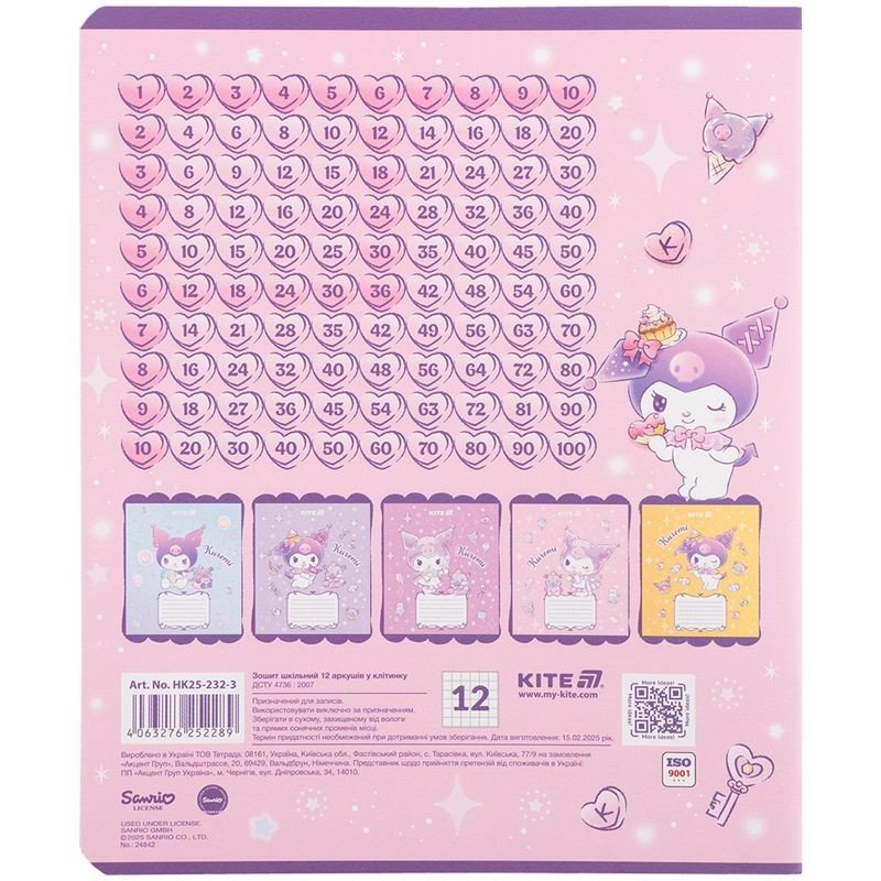 Зошит шкільний на скобі Kite має 12 аркушів, представлений у зручному форматі А5. Аркуші в зошиті зроблені зі щільного паперу, розлініяні в клітинку. Виріб представлено в ущільненій кольоровій обкладинці з ліцензованим зображенням в 5 дизайнах. Ефект на обкладинці: вибірковий УФ лак та глітер. Кольорова задруківка форзаца.