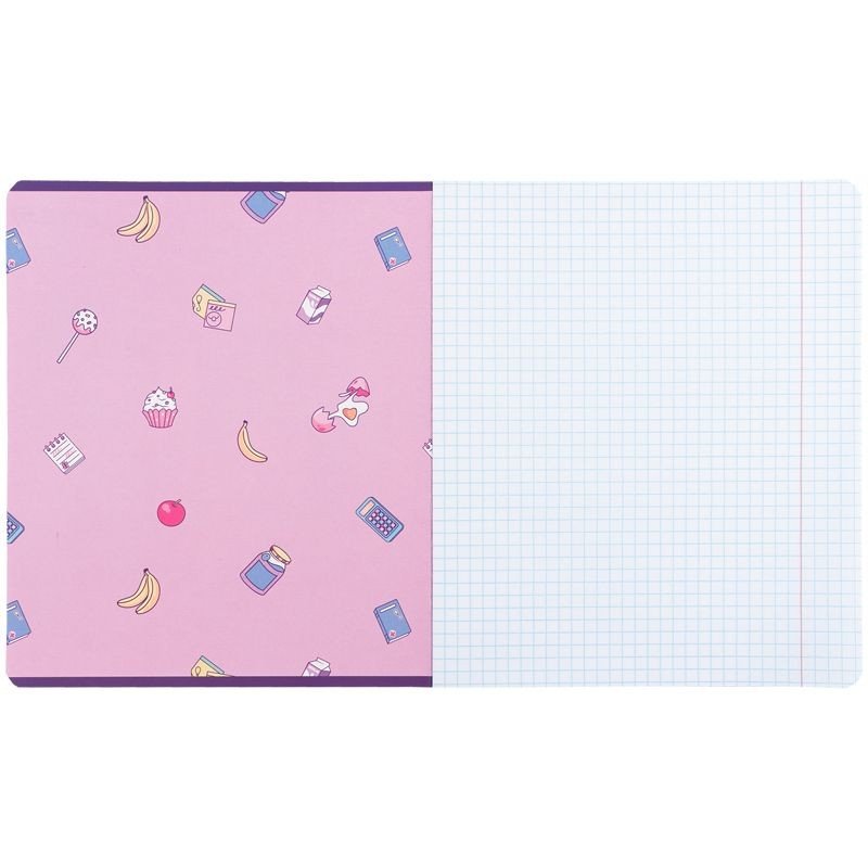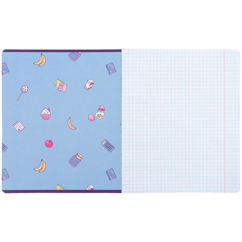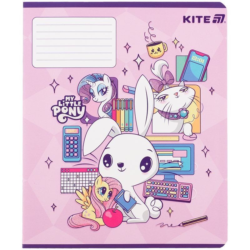 Зошит шкільний на скобі Kite має 12 аркушів, представлений у зручному форматі А5. Аркуші в зошиті зроблені зі щільного паперу, розлініяні в клітинку. Виріб представлено в ущільненій кольоровій обкладинці з ліцензованим зображенням в 5 дизайнах. Ефект на обкладинці: вибірковий УФ лак та глітер. Кольорова задруківка форзаца.