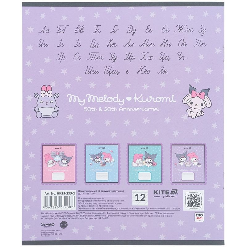 Зошит шкільний на скобі Kite має 12 аркушів, представлений у зручному форматі А5. Аркуші в зошиті зроблені зі щільного паперу, розлініяні в косу лінію. Виріб представлено в ущільненій кольоровій обкладинці з ліцензованим зображенням в 4 дизайнах. Ефект на обкладинці: софт тач та вибірковий УФ-лак. Кольорова задруківка форзаца.