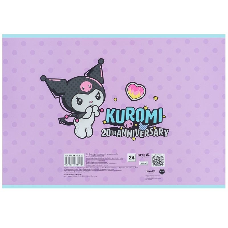 Горизонтальний зошит для малювання Kite в картонній обкладинці. Складається із 24 білих ущільнених (100 г/м2) аркушів формату А4, скріплених скобою з мікроперфорацією. Обкладинка із зображенням персонажів представлена в чотирьох дизайнах. Зошит для малювання рекомендований для дітей шкільного віку. Ефект на обкладинці: софт тач та вибірковий УФ лак