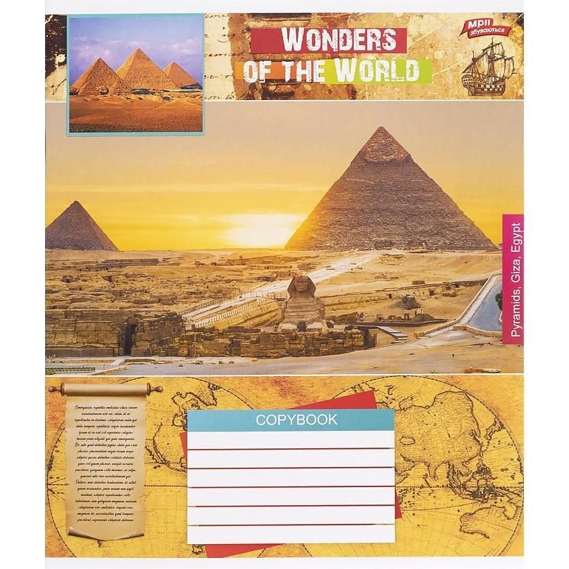 Зошит шкільний на скобі має 18 аркушів, представлений у зручному форматі А5. Аркуші в зошиті зроблені зі щільного паперу, розлініяні в клітинку. Виріб представлено в ущільненій кольоровій обкладинці у 4 яскравих дизайнах. Продаються комплектом 20 штук в упаковці.